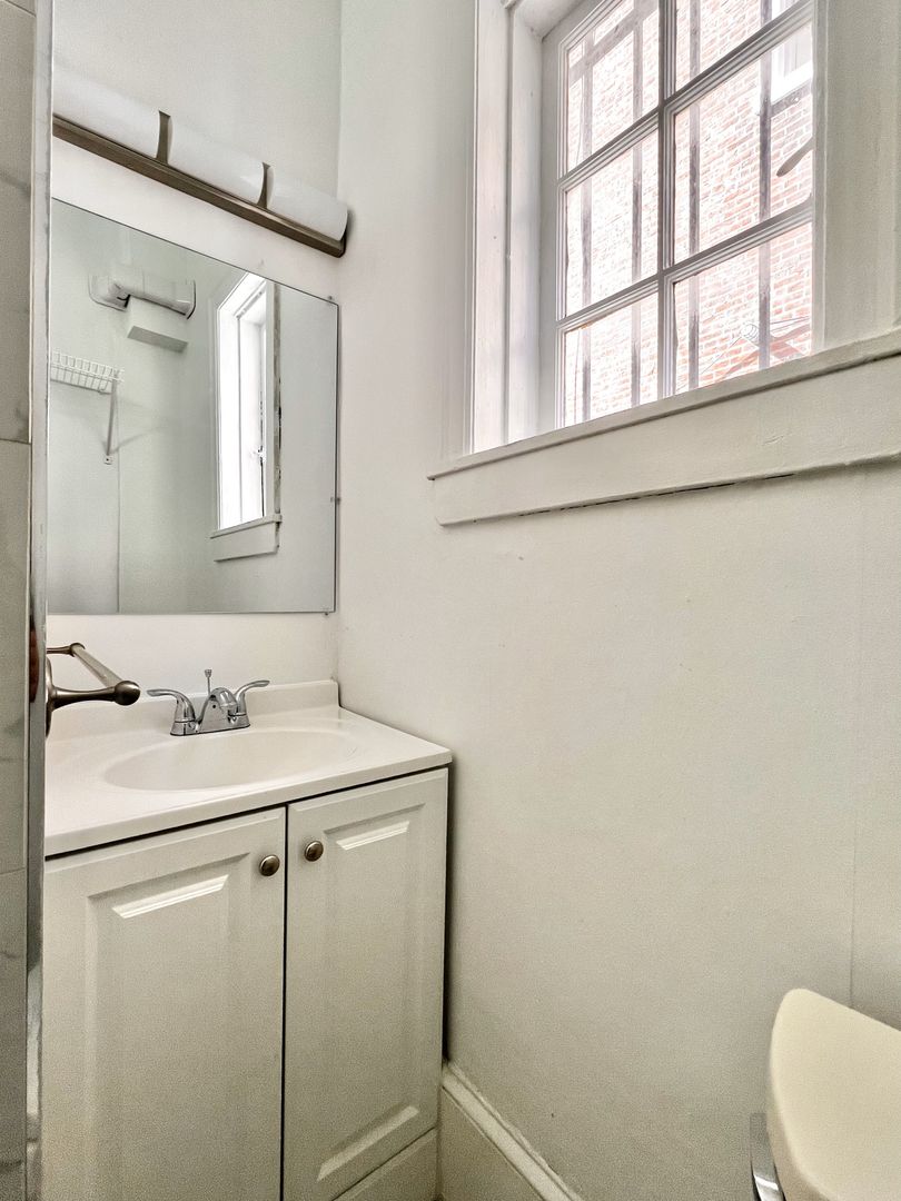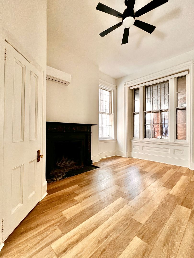 Situated within a classic Philadelphia brownstone at 10th and Spruce Streets, this property is nestled on a quaint, tree-lined block—offering a quieter, neighborhood feel while still being in Center City. Residents also enjoy access to a shared courtyard space.