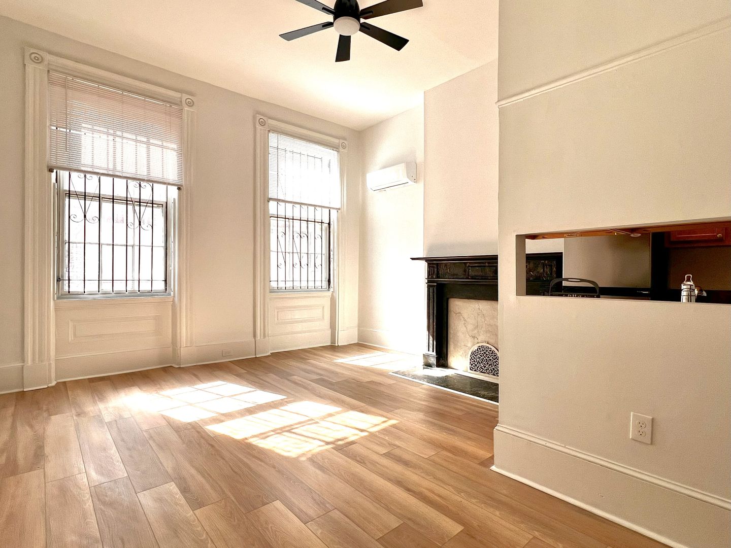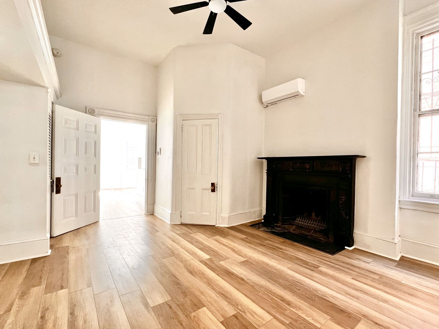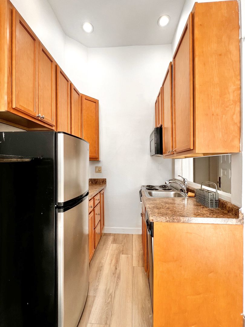 Welcome to this charming and spacious one-bedroom apartment located in the heart of Washington Square West. This home features high ceilings and brand-new luxury vinyl plank flooring throughout, offering a modern touch while maintaining classic character. The living room includes a decorative fireplace, creating a warm and inviting atmosphere, and flows seamlessly into an open kitchen layout—perfect for both relaxing and entertaining.