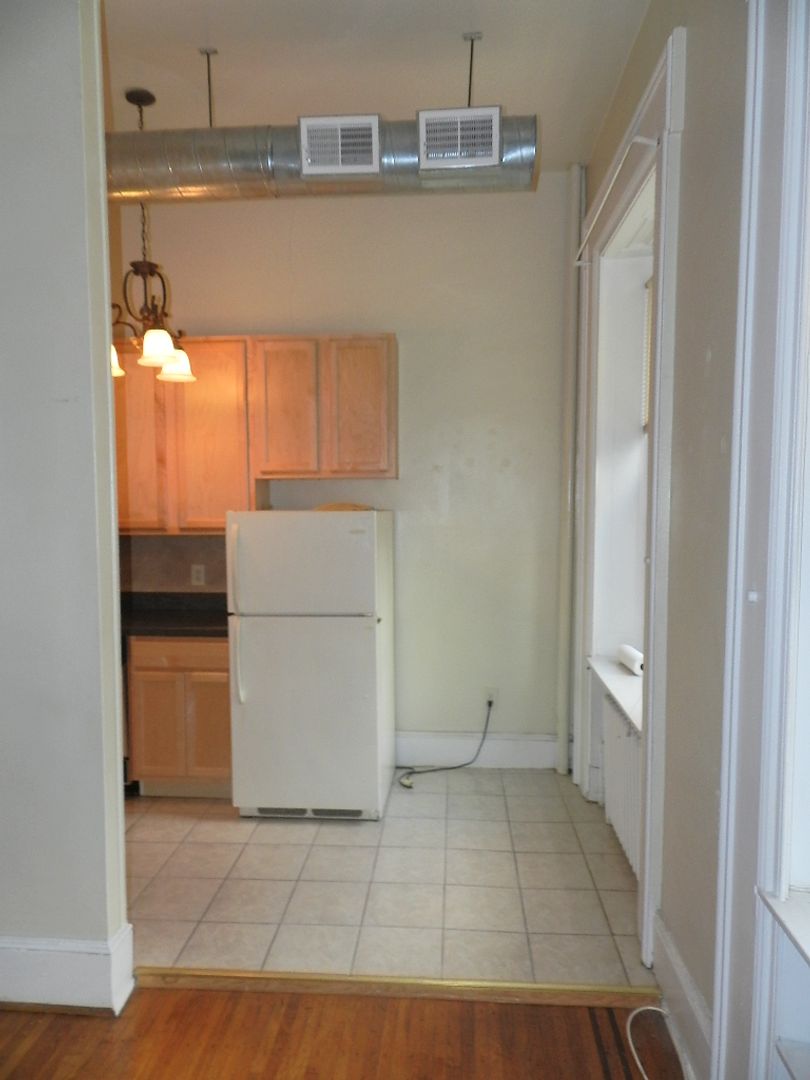 Spacious one-bedroom apartment located in the heart of Rittenhouse Square, featuring beautifully refinished hardwood floors, high ceilings, and an updated separate kitchen with modern fixtures and appliances. The living area is highlighted by a decorative marble fireplace, exposed ductwork, central air, abundant natural light, and excellent closet space throughout.