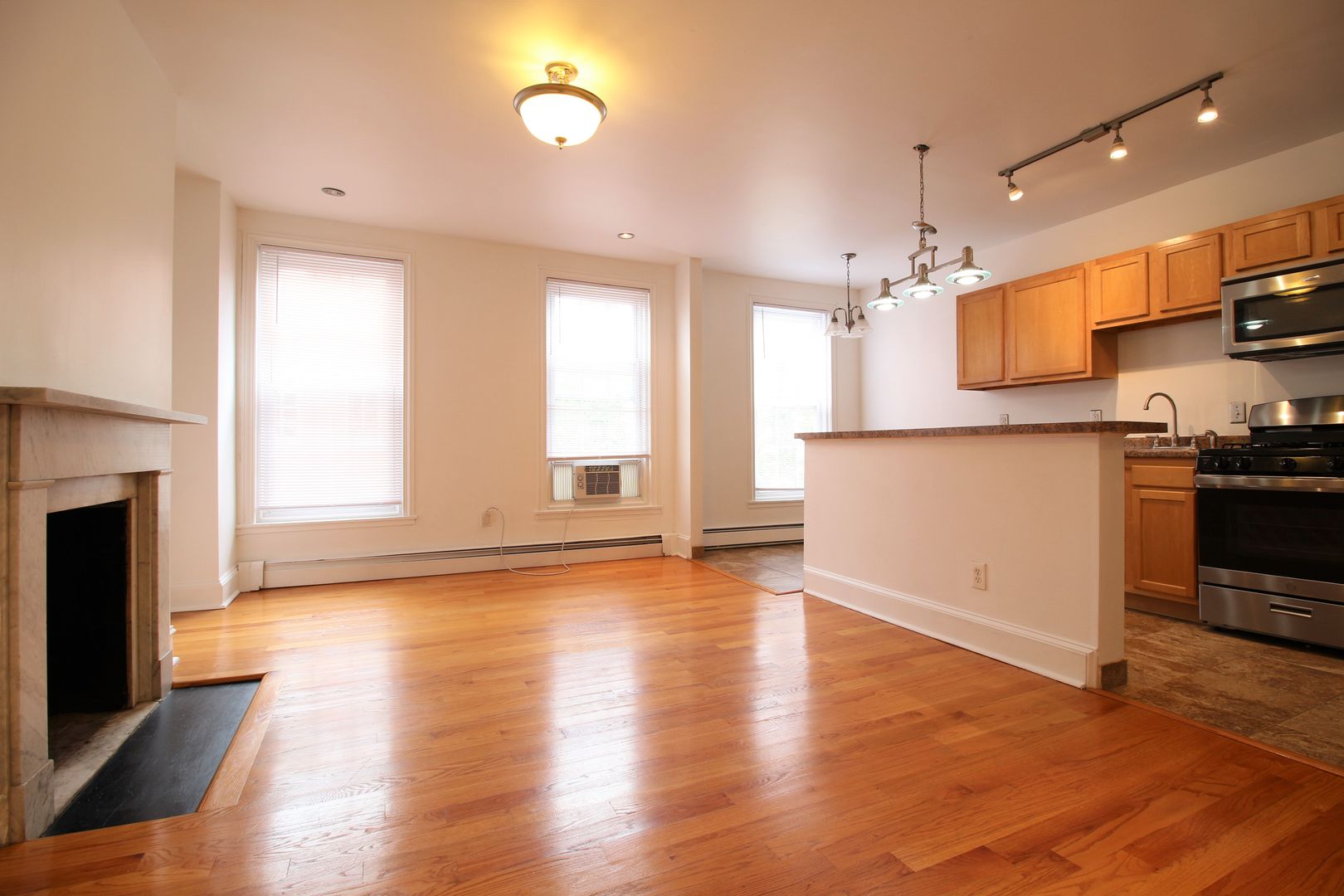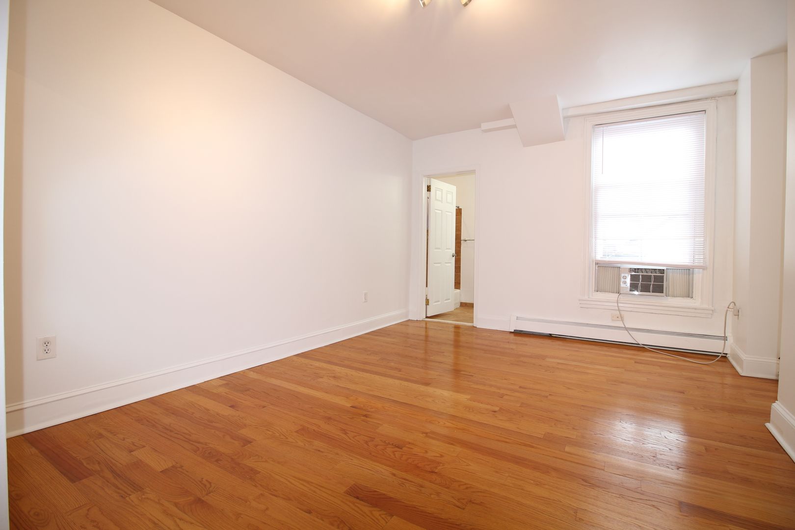 This inviting home features high ceilings, a spacious living room and bedroom, and stunning hardwood floors throughout. The updated kitchen is equipped with modern appliances and finishes, and an A/C unit is included for your comfort.